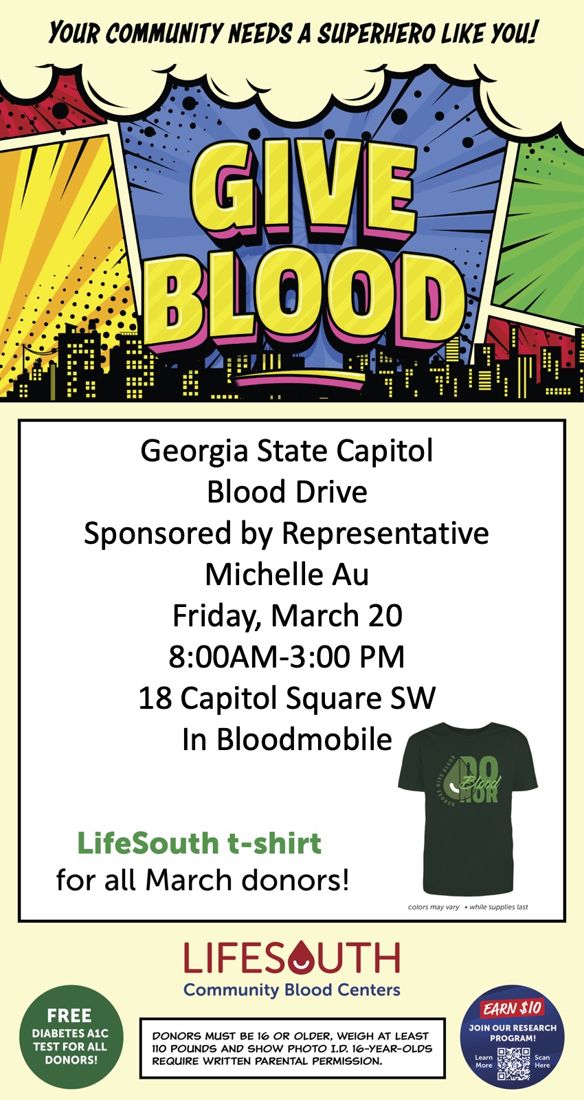 Join Team Au next Friday, March 20th for our second Gold Dome Blood Drive of the 2026 session! We’ve partnered with our friends from LifeSouth once again to give the gift of life to trauma, cancer, surgical, and pediatric patients, among the many people who may need life-saving blood transfusions!