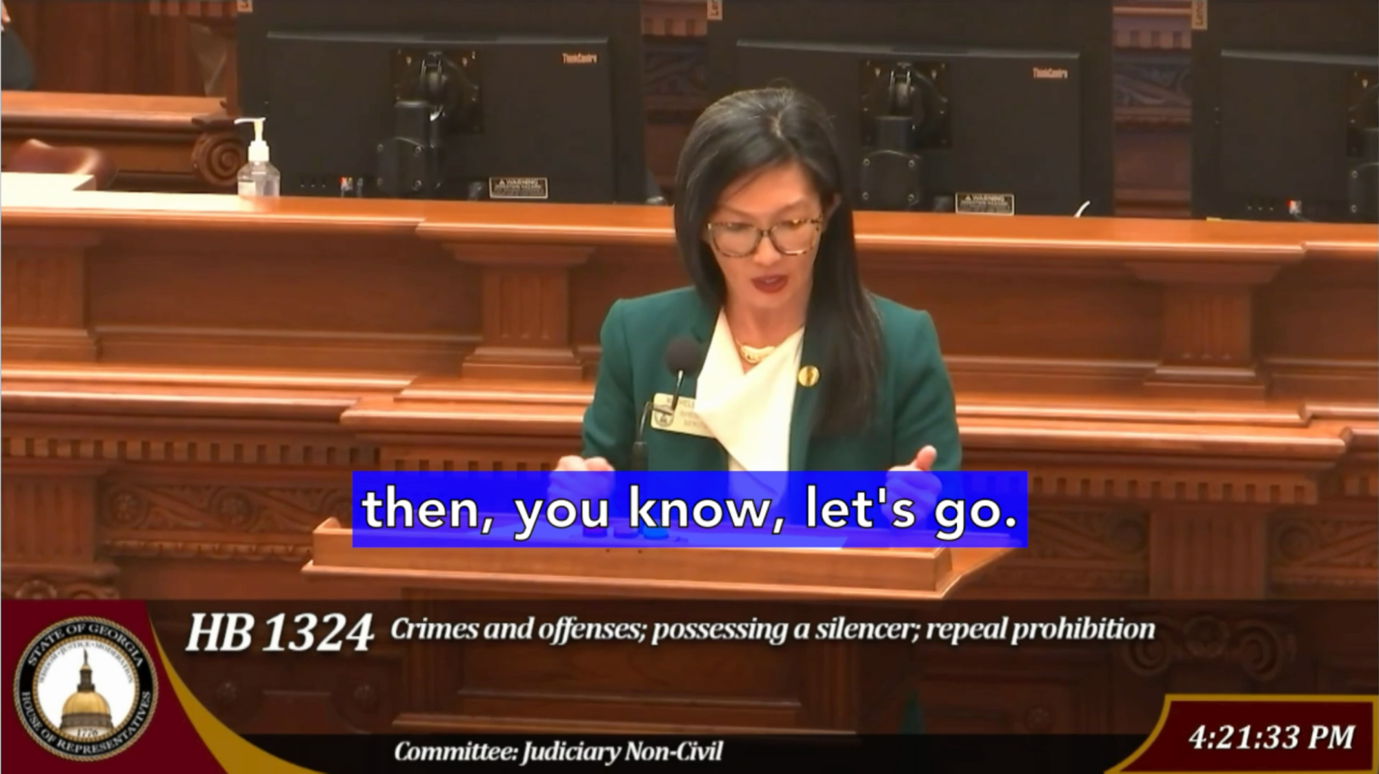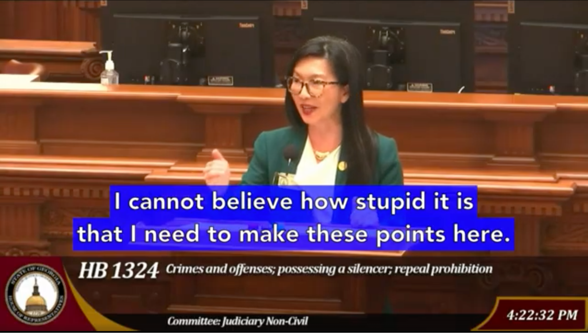 HB 1324 aimed to remove state-level prohibitions on possessing firearm silencers and to repeal penalties for their use. I spoke against this bill as part of the House floor debate.