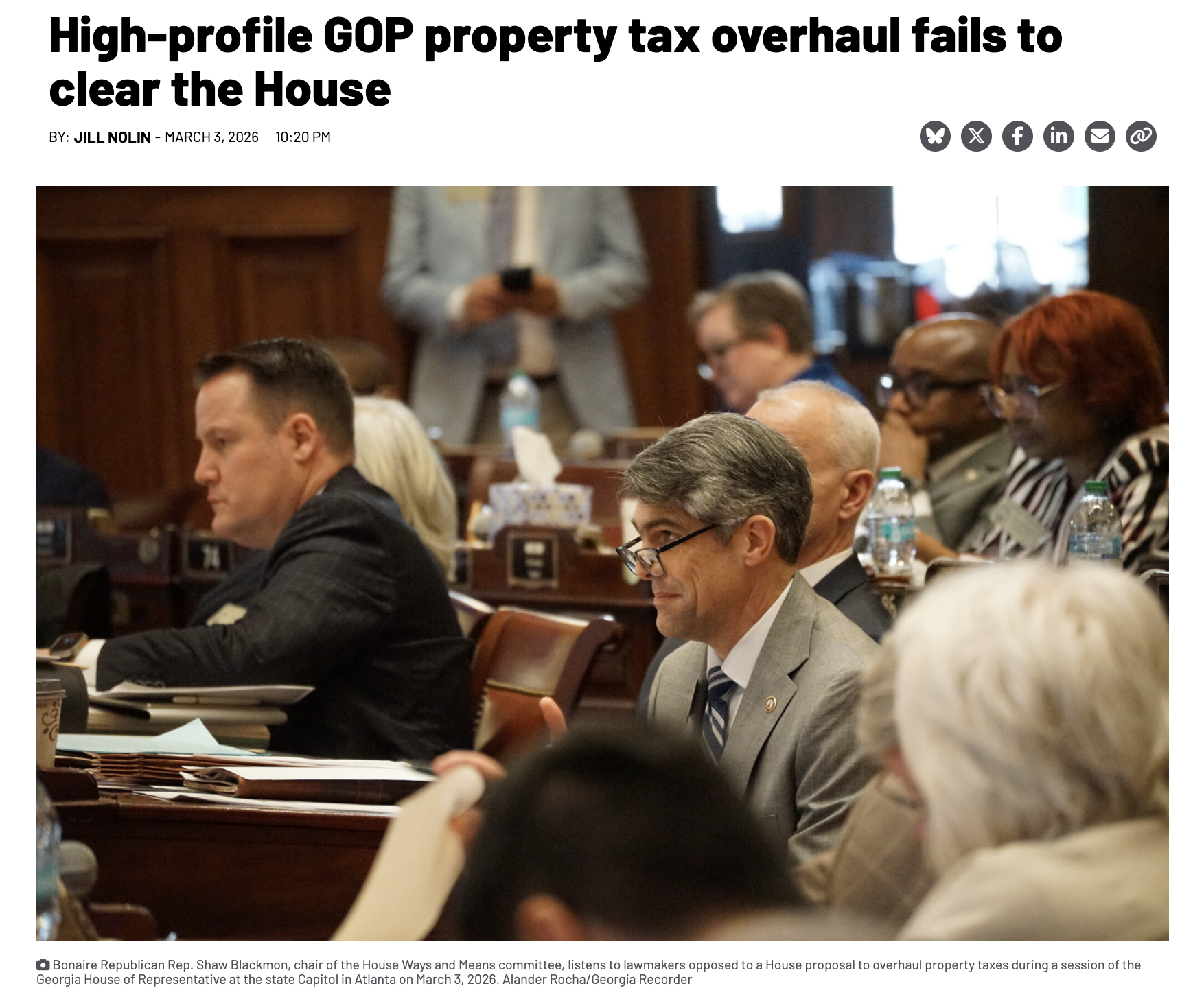 I am very open to discussing substantive property tax reform, and agree that Georgians deserve tax relief. I was pleased to vote in favor of property tax relief in the amended FY 2026 budget, as well as for HB 1001, which accelerates a planned cut to the state’s income tax rate to 4.99% , down from the current rate of $5.19%, three years ahead of schedule.