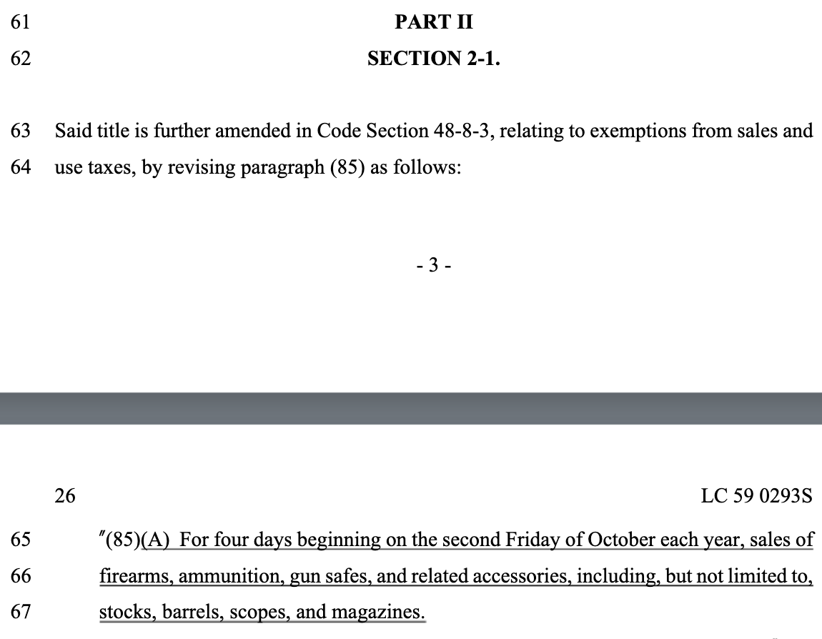 This bill, with the added language, is set to be voted off the Senate floor on Monday. Given that the addition of the sales tax holiday for guns was a Republican leadership priority, all indications are that it will pass out of the Senate by a simple majority vote.