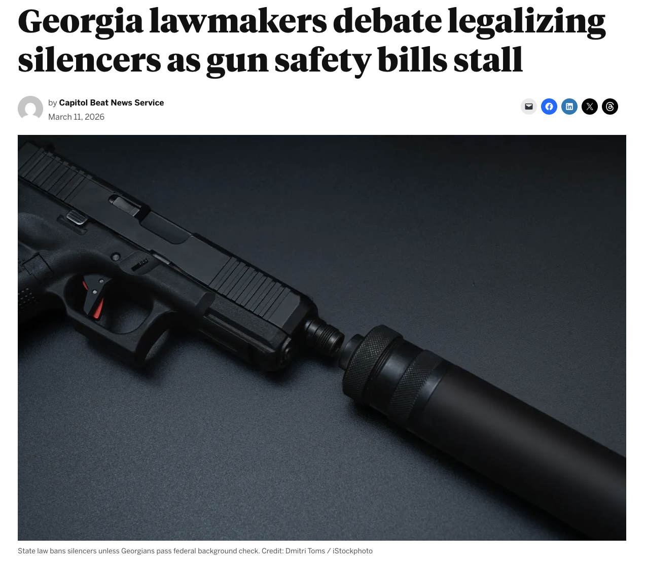 The amendment enhances the penalty for people who knowingly possess a silencer if they also know they cannot legally own a gun. However, Georgia passed Governor Kemp’s permitless carry law in 2022. What this means is that someone can be openly carrying a loaded gun, with a silencer, strolling on the street next to a school, and they cannot be stopped, asked if they are a legal gun owner, nor can they be subject to that enhanced penalty until the moment they are pulling the trigger to commit a crime.